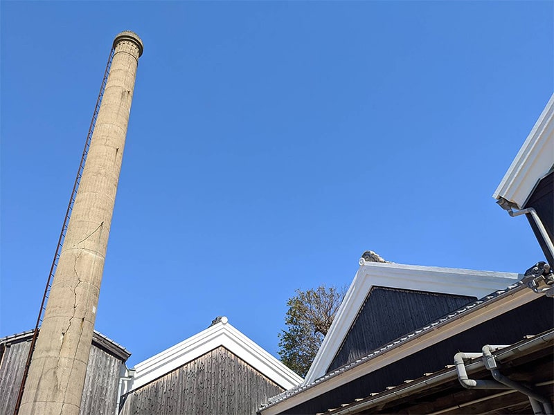 1階に煉瓦で大口径2口の釜を造っています。作業庭の地下に煙道を通して、作業庭の東端に煙突を建てています。仕上げは酒蔵と同様です。