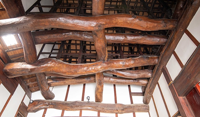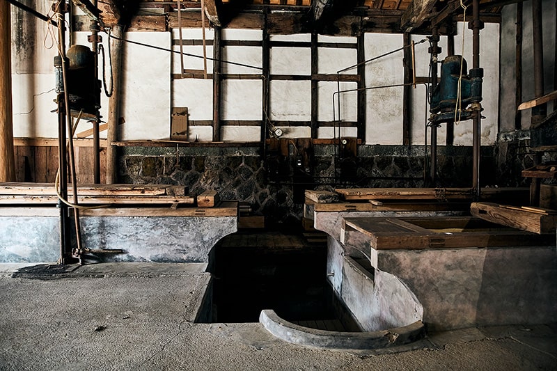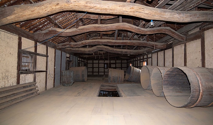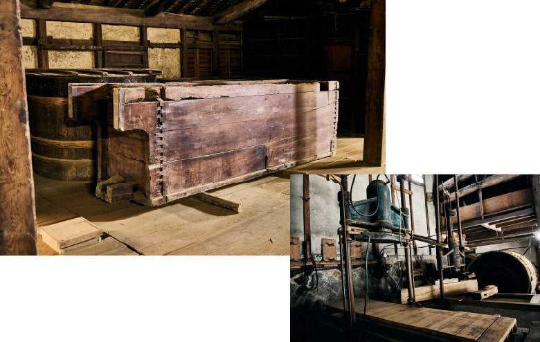 酒蔵や屋敷の土間の梁には、海水に漬けた松の塩木がふんだんに使われ、訪れた人がため息をつくほど。人々が驚くような「見得の梁(みえのはり)」を据えた分、それに見合うだけの酒をつくろうとした喜三郎の精神が、代々受け継がれてきました。