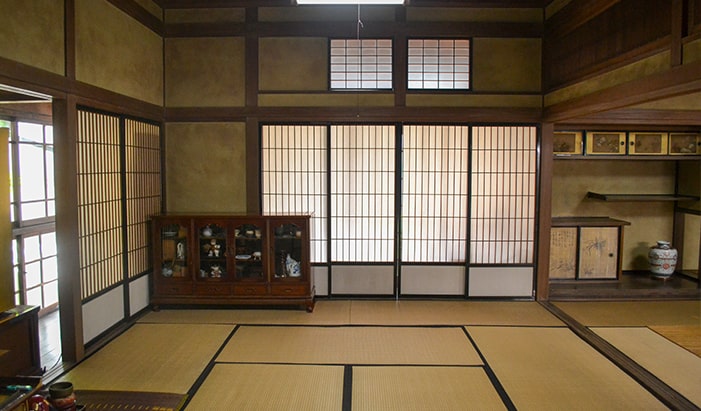 また主屋は、取次の間を吹き放ちとして二階に高欄を回し神棚を配する点、土間に曲がった丸太を縦横に何段も重ねた梁組を見せる点等、福岡市近郊の町屋に見られる特徴をよく残しており、かつ、最大級の規模を誇ります。