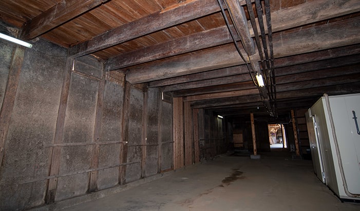 古酒倉(南)の東面と古酒倉(北)の西面北半分の間には間仕切りを設けず、1室となっており、北面に出入口があります。仕上げなどは麹室と同じです。
