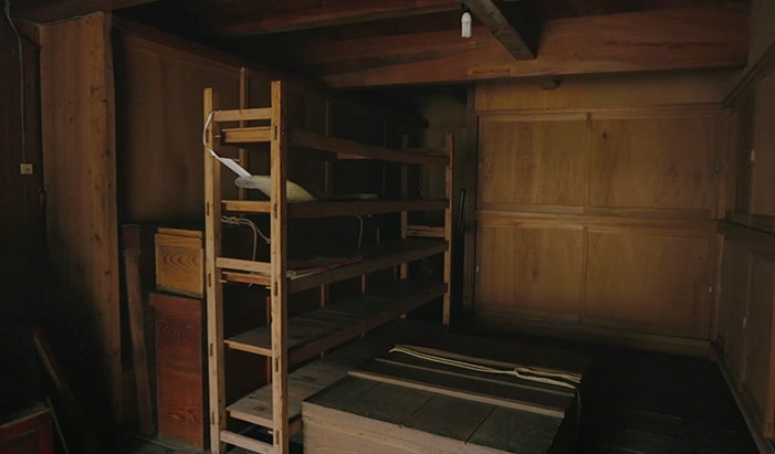この部屋は、大蔵(仕込み蔵)の2階にあります。酒づくりの指導や技術支援を目的に、仕込みの時期になると国税局から派遣された鑑定官が倉内に常駐し、寝泊まりしていました。