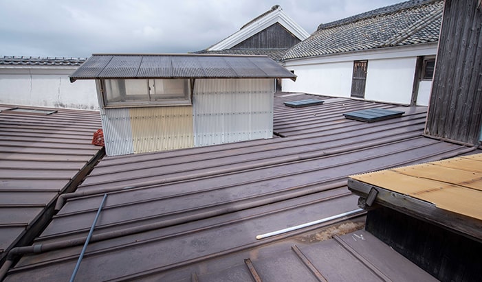 この建物は、出荷前の酒の瓶詰めなどを行い、屋根の上は桶干場として利用されました。