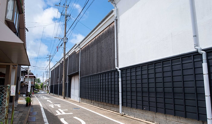 豊村酒造旧醸造場施設は、「津屋崎千軒」と称された津屋崎地区の中心部に位置します。