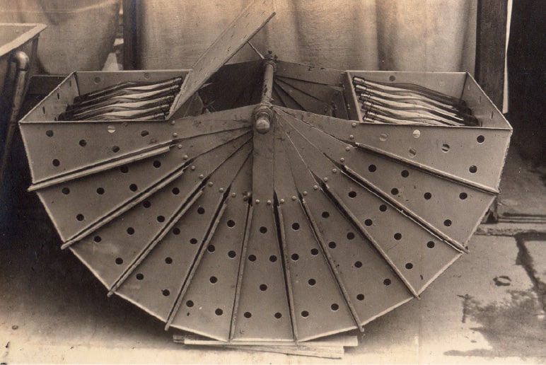 これは、かつて一升瓶を洗うために使われていた装置の一部です。現在は残っておらず、いつ頃から使用されていたのか、詳しい記録は見当たりません。